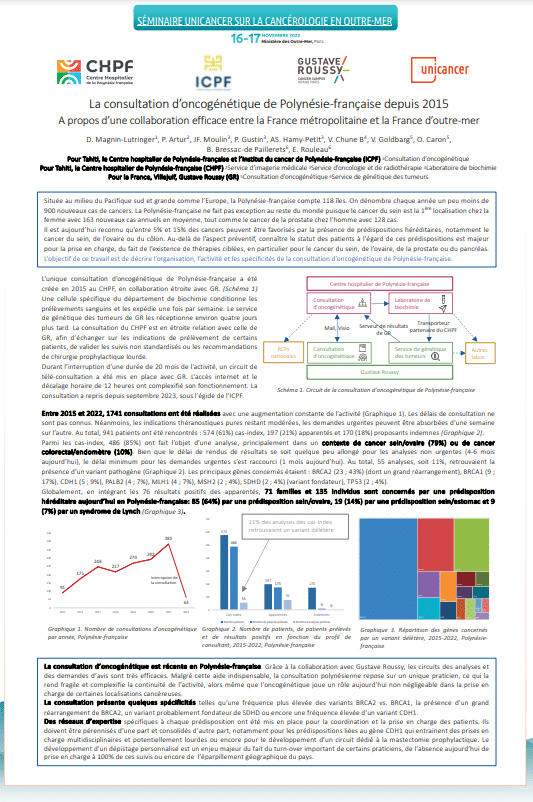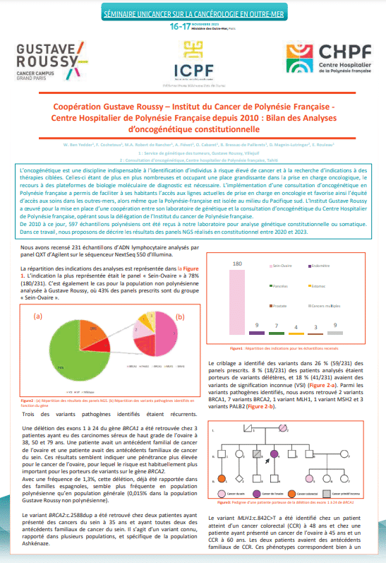 Coopération Gustave Roussy – Institut du Cancer de Polynésie Française – Centre Hospitalier de Polynésie Française depuis 2010 : Bilan des Analyses d’oncogénétique constitutionnelle