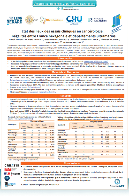 Etat des lieux des essais cliniques en cancérologie : inégalités entre France hexagonale et départements ultramarins