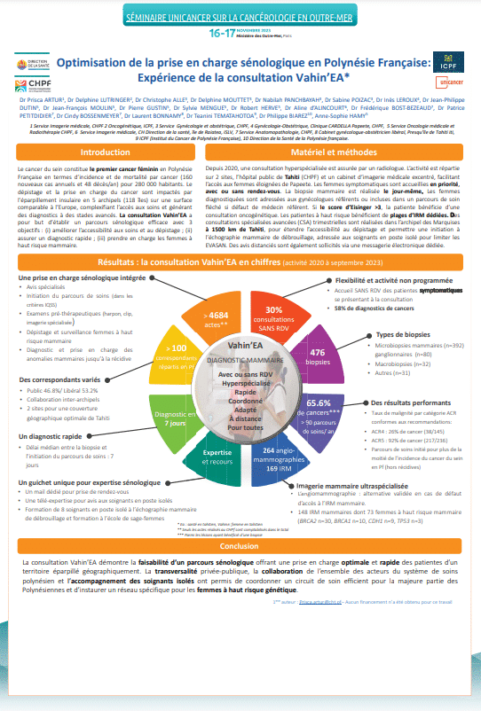 Optimisation de la prise en charge sénologique en Polynésie Française: Expérience de la consultation Vahin’EA