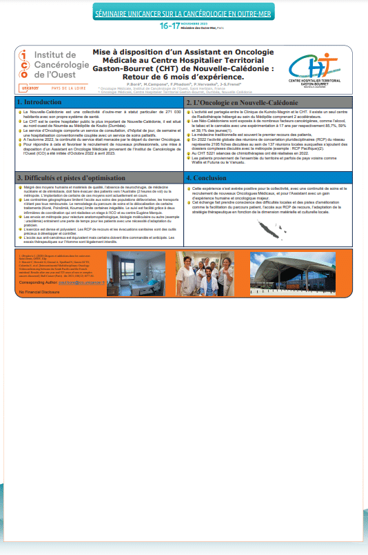 Mise à disposition d’un Assistant en Oncologie Médicale au Centre Hospitalier Territorial Gaston-Bourret (CHT) de Nouvelle-Calédonie : Retour de 6 mois d’expérience.