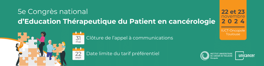 L’IUCT-Oncopole et Unicancer organisent le 5e congrès national d’éducation thérapeutique pour le patient en cancérologie les 22 et 23 novembre 2024 : « L’ETP dans tous les parcours ! ». Des temps de partage entre professionnels qui permettront un tour d’horizon des pratiques d’ETP et de leurs intégrations dans les parcours de soins. Cet évènement, dédié aux professionnels de santé, a plusieurs objectifs pédagogiques :