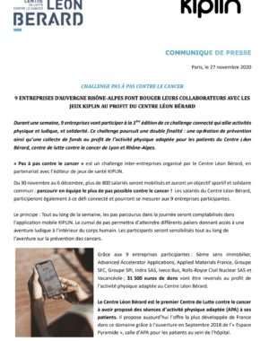 « Pas à pas contre le cancer » est un challenge inter-entreprises organisé par le Centre Léon Bérard, en partenariat avec l’éditeur de jeux de santé KIPLIN.