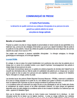 « Cette étude monocentrique repose sur un système de collecte prospective de données dont l’objectif est de recueillir des informations-clés sur l’état de santé et la satisfaction des patients pris en charge pour un cancer avant et après la mise en place d’un parcours de soins digitalisé et coordonné », explique le Dr Géraldine Pignot, Chirurgien en urologie, porteur du projet.