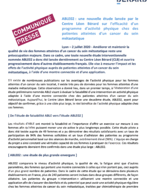 Lyon – 2 juillet 2020 – Améliorer et maintenir la qualité de vie des femmes atteintes d’un cancer du sein métastatique reste une préoccupation majeure. Dans ce cadre, une toute nouvelle étude interventionnelle nommée ABLE02 a donc été lancée dernièrement au Centre Léon Bérard (CLB) et ouvrira progressivement dans d’autres établissements français. Elle vise à mesurer l’impact et les effets de l’activité physique auprès de patientes atteintes d’un cancer du sein métastatique, à l’aide d’une montre connectée et d’une application.