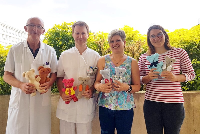 A la fin de l’examen, nous remettons à l’enfant un « diplôme du courage » et une association qui s’appelle Petit cadeau Bonheur, qui offre des cadeaux aux malades du cancer, va bientôt offrir un doudou aux enfants qui passent dans notre service. Les doudous sont en fabrication en ce moment.