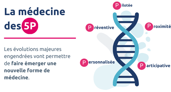 Ces évolutions d’ampleur donnent lieu à l’avènement d’une nouvelle forme de médecine : la médecine 5P :