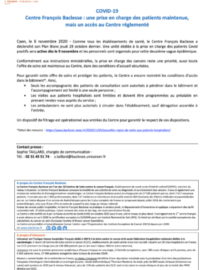 *Détail des mesures : https://www.baclesse?news.fr/2020/11/05/nouvelles?regles?de?visite?aux?patients?hospitalises/