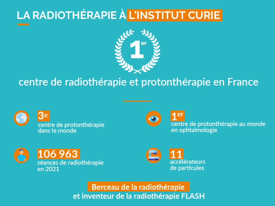 Avec un plateau technique de radiothérapie le plus complet d’Europe, l’Institut Curie est le premier centre de radiothérapie et de protonthérapie en France. En 2023, l’Institut Curie lance un vaste programme pour la radiothérapie impliquant un plan d’investissement d’envergure pour renforcer la modernisation de son plateau technique et faire bénéficier ses patients des techniques les plus innovantes et avant-gardistes. Ce plan d’envergure – 56 millions investis sur 6 ans – concerne l’ensemble des équipements de radiothérapie et tous les sites de l’Institut Curie : Paris, Saint-Cloud et Orsay.