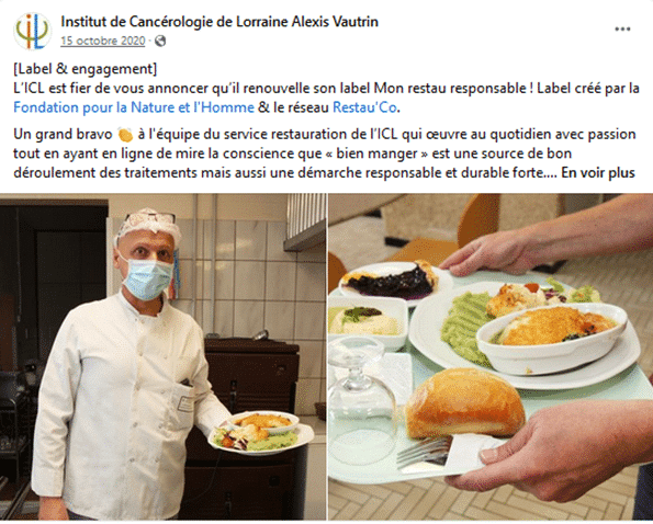 « En 2018, le service restauration de l’Institut de Cancérologie de Lorraine s’est engagé pour l’obtention du logo « Mon restau responsable® ».