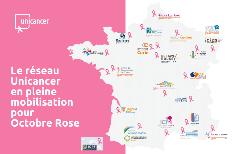 Octobre rose est le mois de la mobilisation contre le cancer du sein. En France, 30% des femmes atteintes d’un cancer du sein sont traitées dans les centres du réseau Unicancer : une occasion unique de sensibiliser le grand public au dépistage, à la prévention et au traitement de ce type de cancer, mais aussi de proposer aux patientes (ou anciennes patientes) des solutions efficaces pour améliorer leur qualité de vie. Le réseau Unicancer s’engage à nouveau à cette occasion, en proposant de nombreux événements et initiatives diverses.