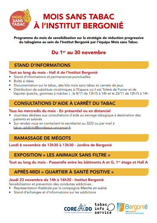 Dans le cadre de Mois Sans Tabac, l’Institut Bergonié réalise plusieurs actions :
