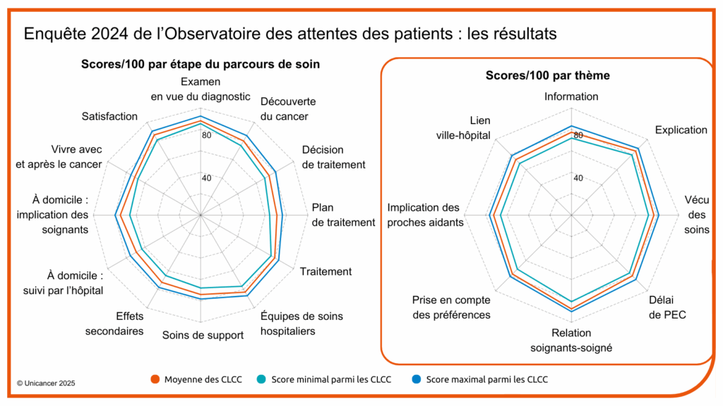 Une démarche novatrice, tant par son ampleur que par son approche. Avec ce questionnaire PREM[1], l’Observatoire des attentes des patients d’Unicancer (voir encadré) donne la parole à plus de 13 000 patients sur l’ensemble de leur parcours de soins. De quoi offrir une vision sans précédent du vécu des patients, au-delà des études habituelles centrées sur un épisode de soins précis. « Nous souhaitons remercier tous celles et ceux – patients comme aidants – qui ont pris le temps de répondre, affirme Sophie Beaupère, déléguée générale d’Unicancer. Ils ont permis de mettre en évidence un très haut niveau de satisfaction et surtout de dégager des pistes d’amélioration. »