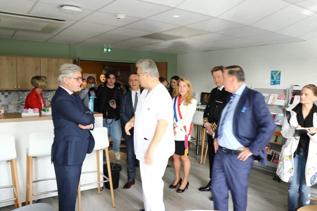 Le Ministre a ensuite visité notre plateau unique des soins de support intégrant une salle dédiée à l’activité physique adaptée et la kinésithérapie, ainsi que les chambres dédiées aux prises en charge spécifiques.