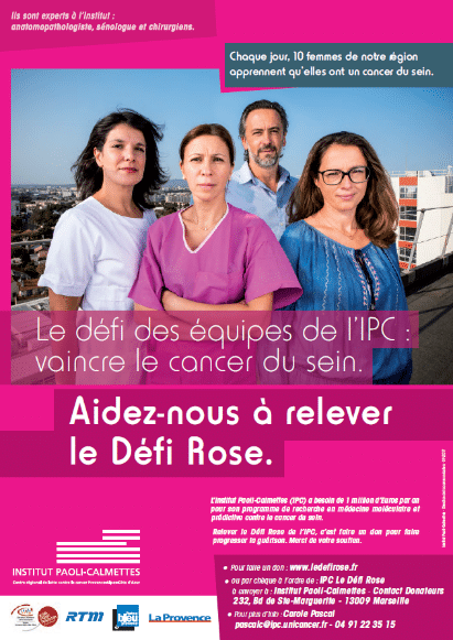 Le Défi Rose est la campagne d’appel à la générosité publique de l’institut pour soutenir un programme de recherche bénéficiant aux patientes atteintes d’un cancer du sein. Relever le Défi Rose de l’IPC, c’est faire un don pour faire progresser la guérison.