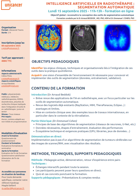 Save the Date – Formation IA en radiothérapie : segmentation automatique