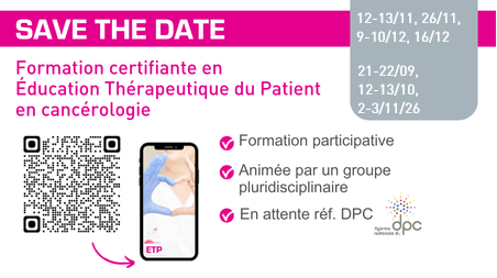 Contact et inscription : https://ecoleducancer.upility.com/products/148/etp-education-therapeutique-du-patient-en-cancerologie