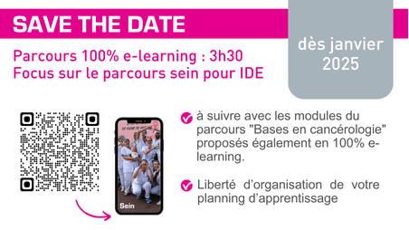 Contact et inscription : https://ecoleducancer.upility.com/products/203/focus-sur-le-parcours-sein-100-e-learning